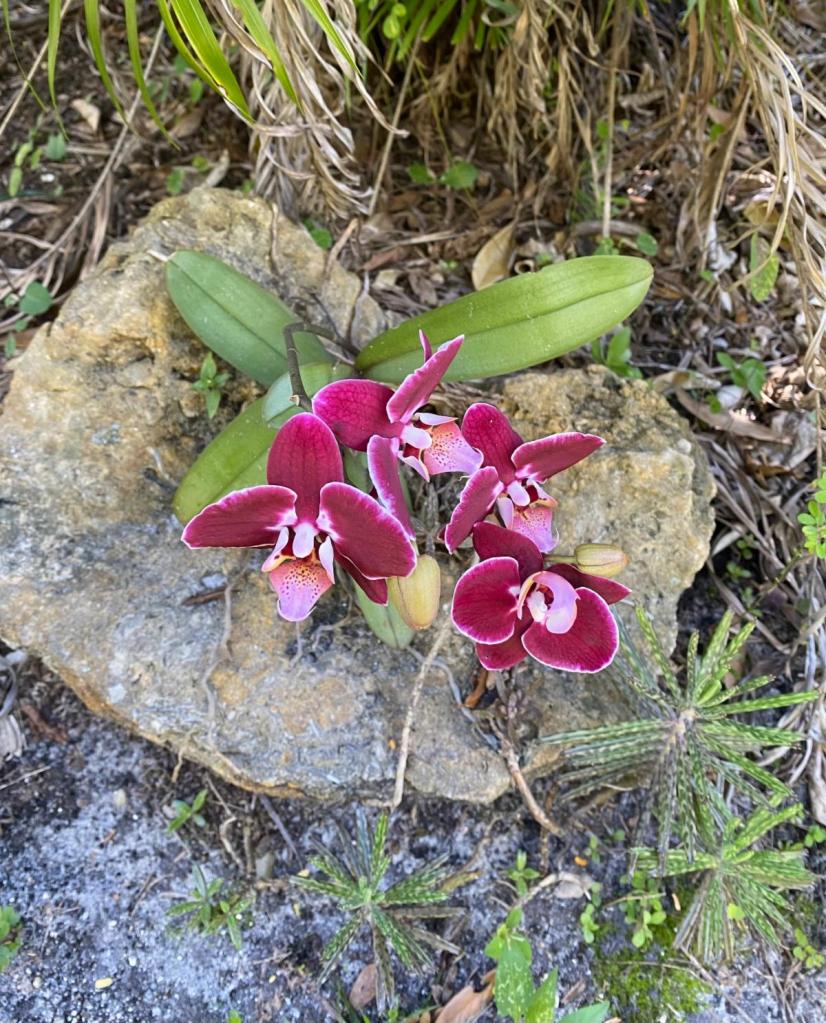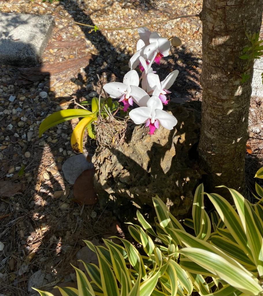 Finally, what about those photos? Well, the main reason is they’re pretty and eye-catching! And when we’re not working, Anna and I love tending to our yard. These orchids have wrapped their roots right around the rocks, and they are two of at least 20 orchids we have in various interesting spots all over the yard.