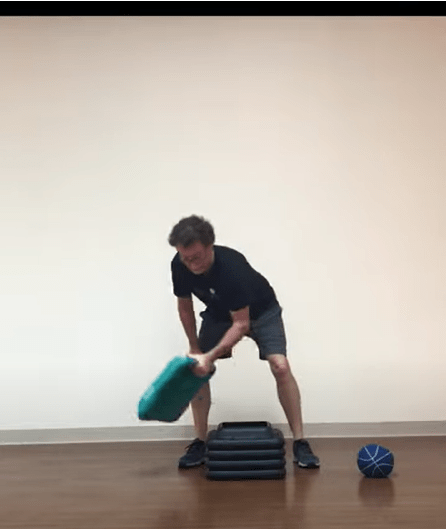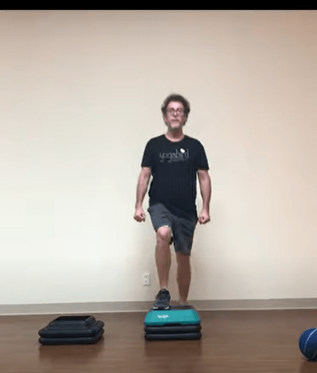 We suggest the one shown, for which you can adjust the height. We ordered ours online – it’s the Amazon brand. It has great versatility for a whole-body workout – obviously, you can step up and down in a variety of ways, and you can also use it for upper-body and core work.
