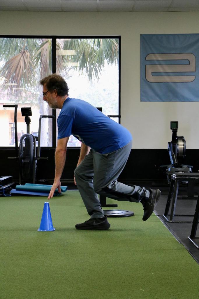 If the Times reporter had asked me, I would have said single-leg balance moves. Not that my clients absolutely hate single-leg balance; they are frustrated by it. First, many of them are actually better at balance than they think and second, the way to get better is to do it. In the photo, I’m doing a single-leg squat.