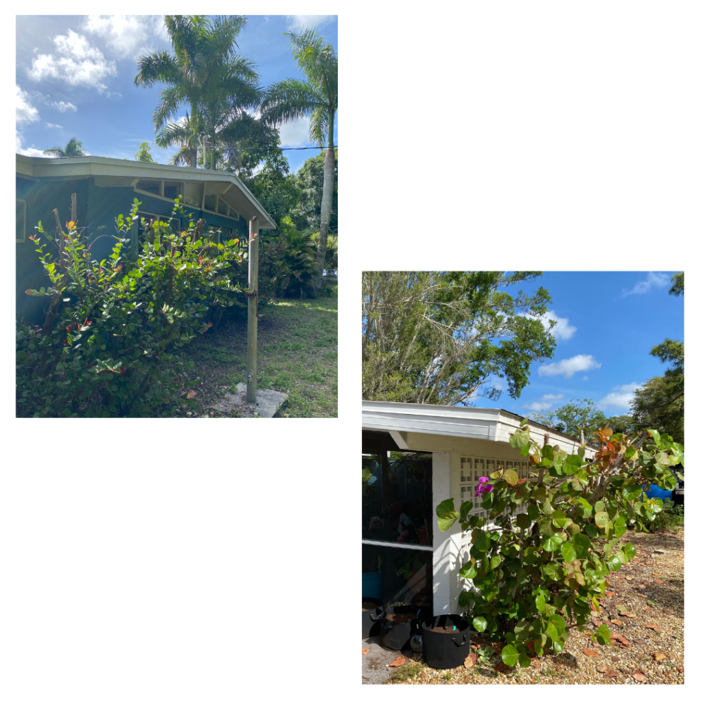 Last weekend, the gym was getting painted (and it looks awesome!) so I tackled some overdue tree trimming. The coco plum in the backyard and sea grape in front had grown up over and onto the roof. The very earnest guy who handles our pest control had been on me for a while to take care of it.